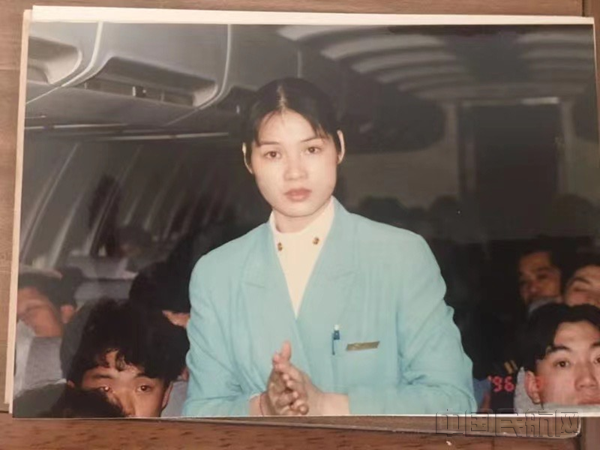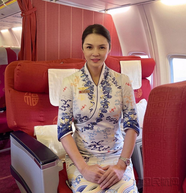 海南航空第一代乘务员郑心霞着海天祥云制服执行航班
