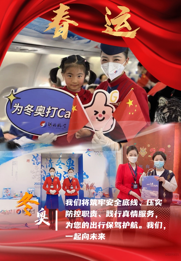 河北航空以幸福河航建设为主题,注重理念引领,突出品牌特色,营造环境氛围,创新服务举措,让广大旅客在浓厚的服务文化氛围中,领略到幸福河航的无限魅力。结合冬奥、春节、元宵节等重要节点推出多项主题活动,营造出热闹喜庆的节日氛围,打造沉浸式冰雪体验,进一步提升旅客乘机满意度,构建有温度的幸福河航服务品牌。河航人与旅客共同绘就的多彩画卷,使这个春运成为一个有色彩、有温度、有情怀的春运。