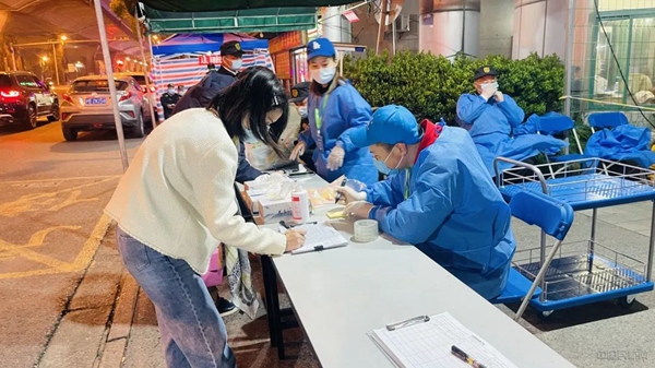 在所住小区实行封闭管理后,吴炎报名加入小区志愿者队伍,帮助居委建立了8个小区核酸居民群,每天负责发布通知以及处理突发事件。由于在单位接受过防护服的穿脱培训,她积极参与到小区的核酸登记采样中,动辄忙到深夜,浑身被汗水浸透。