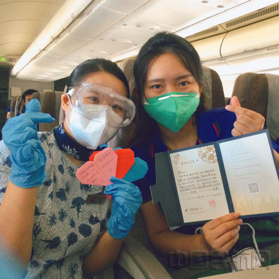 东航乘务组为医护人员手写信纸问候