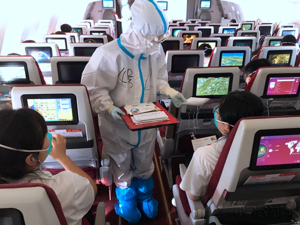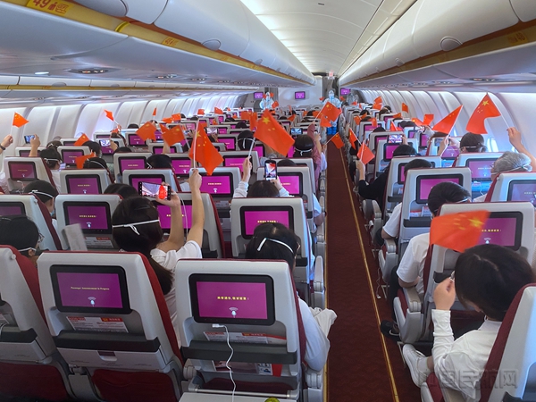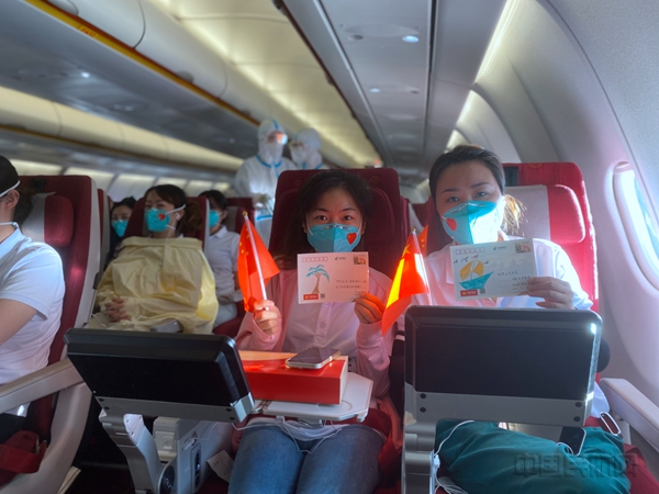 在机上,海南航空精心准备,选派党员示范组执行医疗包机航班,提前布置客舱环境,热情迎接抗疫英雄的到来。