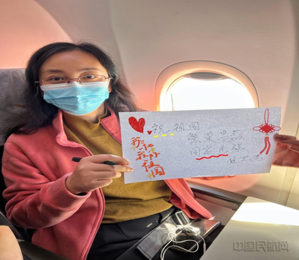 最后,乘务组邀请旅客朋友们亲切合影并在贺卡上送出对党和祖国的祝福,旅客纷纷写下“此生不悔入华夏,我骄傲我是一名中国人,热烈庆祝党的二十大胜利召开!”、”坚守在平凡的岗位上,做好每一项工作,就是个人对国家最大的贡献,祝福我们伟大的祖国明天更加美好!”等内容。在家长的帮助下,小旅客们用水彩笔画下稚嫩又美好的画卷,希望的种子从祖国的花朵中就此萌发。“奋进新征程,建功新时代。在党的二十大胜利召开之日,海航航空旗下乌鲁木齐航空衷心祝愿我们伟大的党永远旗帜高扬,祝愿我们伟大的祖国繁荣昌盛!”随着落地广播的响起,本次航班顺利抵达美丽温州,主题航班活动圆满结束。