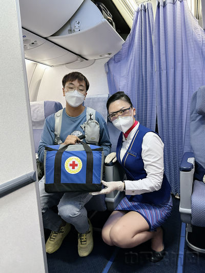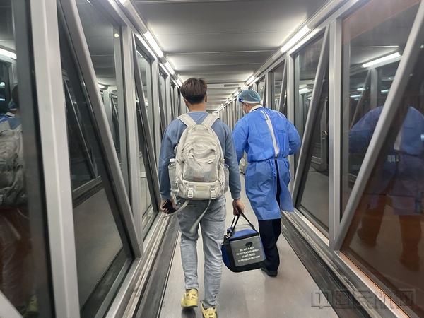 19时38分,航班乘务组安排该旅客优先下机。其间,地面接机人员一路小跑,为其“开路护航”,仅用5分钟既协助旅客完成离机与落地核酸,为造血干细胞运输争取了宝贵时间。