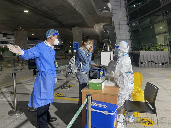 在汕头--19时31分,航班比原计划时间提前20分钟到达揭阳机场。根据揭阳潮汕机场疫情防控要求,所有航班落地均需要核酸检验。因此,南航汕头公司地服部紧盯航班落地时刻、安排专人接机引导、提前联系核酸点医务人员做好准备,接机人员也提前抵达停机廊桥,专程等待旅客下机。