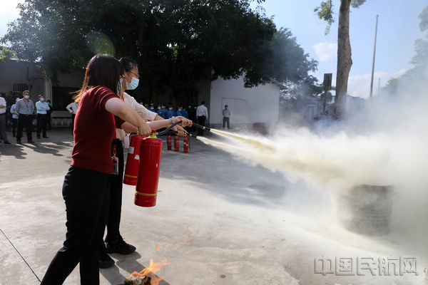 应急撤离演练结束后,北部湾航空应急救援组的值班航医为员工们现场开展心肺复苏讲解和培训。来自南宁吴圩国际机场消防安保部消防支队的专业教员针对消防知识、灭火器使用注意事项,对北部湾航空员工开展现场灭火实操培训,进一步提升员工们的消防应急处置能力。