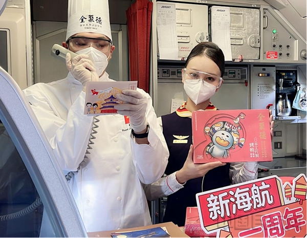 中国民航网 通讯员岳丽鹃 报道:为热烈庆祝加入辽宁方大集团一周年,首都航空联合全聚德在JD5207北京—西宁—玉树的航班上推出全聚德主题航班活动。全聚德作为知名餐饮品牌,同时也是京城美食文化的名片,此次活动内容丰富,形式新颖,通过强强联手,充分利用北京本土航空的资源优势,进一步丰盈“首航味道”,让美食走进客舱,以活力引领客舱,深入推进合作。