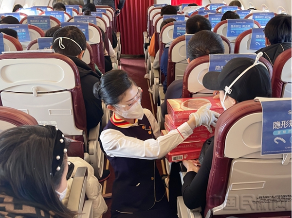 手工片制烤鸭是以我国为数不多的具有自主知识产权的优质纯种北京填鸭。活动主持结束后,乘务员带着精心准备的全聚德手工片制烤鸭礼盒走进客舱,礼盒全部销售一空,美味的烤鸭倍受旅客好评,活动氛围浓郁。