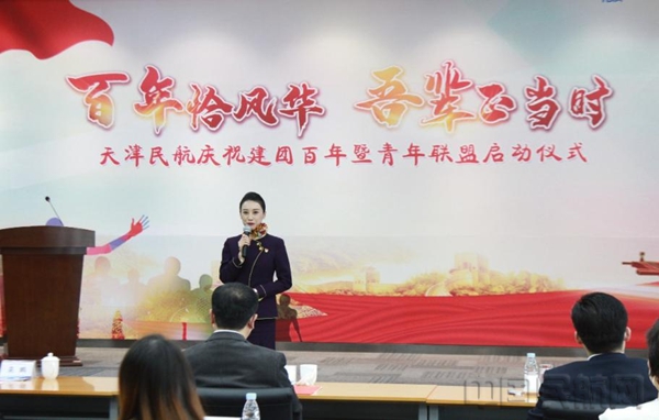 王玉莹在天津民航青年联盟启动仪式上进行发言交流