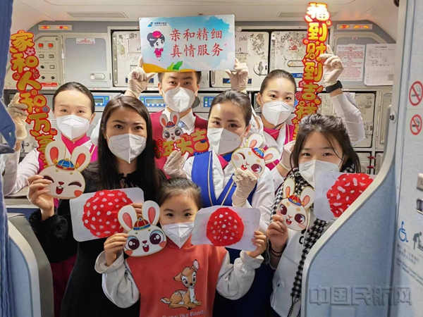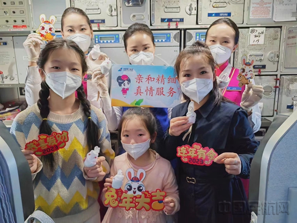 乘务五分部的乘务员们与旅客在航班中折窗花、做“年兔”,落实“五化”服务,擦亮服务品牌,让旅客感受到带有“年味儿”的归家之路。