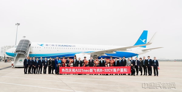 中国民航网 通讯员贺晟 摄影报道:2月7日上午,厦航在厦门高崎机场迎来今年第2架空客A321neo飞机。随着新飞机B-32CY的落户,厦航机队规模达到210架(含旗下河北航31架,江西航15架)。厦航于去年9月与空客签署了A320系列飞机的采购合同,逐步推进机队结构性调整优化。今年元旦之际加入厦航的第一架空客A321neo将于本周六(2月11日)迎来商业首航。