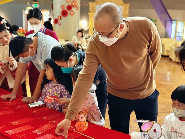 此外,南航上海分公司积极传播传统文化,在万米高空相继开展“木棉新禧”“木棉元宵”系列新春主题航班活动,不仅换上春节主题装饰,使用专属客舱广播词,还举行了五彩兔折纸DIY、新春有奖竞猜、元宵猜灯谜等活动,营造出喜庆祥和的节日氛围。在上海虹桥、浦东南航明珠休息室内,南航上海分公司开展了“喜兔迎新”新春特色活动,工作人员身着汉服与旅客沉浸体验传统民俗文化,邀请旅客写春联、画年画、品元宵,增添旅途中的浓浓年味。