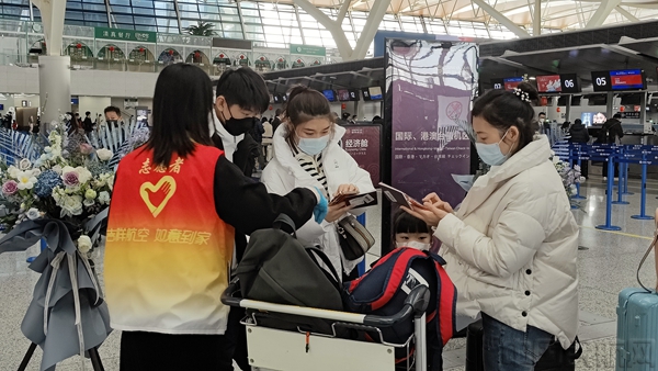 吉祥航空机关志愿者支援春运一线为旅客提供出行问询