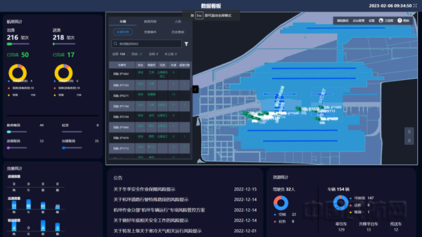 该系统对机坪车辆和人员实现实时、可视化的系统管理,提高机坪运行效率,为东航机坪管理提供决策支持:系统能根据定位的车辆精准信息,进行自动化任务派遣;在系统的数据看板平台上,监管人员则能通过实时监控机坪运行情况,准确掌握东航机坪作业人员、车辆运行、航班保障情况,对机坪车辆及作业人员实施有效监管,为安全运行提供保障。