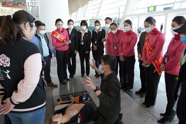 通过理论与实操相结合的现场学习,在场党员、干部们进一步加深了应急救护和心肺复苏知识,以及自动体外除颤器(AED)的实操经验,为更好地保障旅客平安出行夯实了基础。