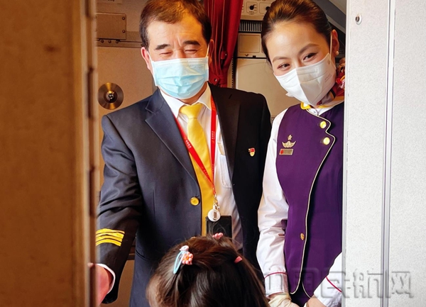 周广德机长向旅客道别