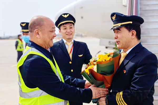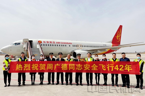 2023年3月15日12时11分,随着海航航空旗下长安航空9H8306航班从昆明平稳降落在西安咸阳国际机场,将旅客安全送达目的地,长安航空飞行教员、机长周广德顺利完成了退休前的最后一次飞行任务,为42年的飞行生涯划上了圆满的句号。在舱门口,他同乘坐此次航班的旅客一一挥手道别,旅客们也纷纷向老机长致以敬意和祝福。
