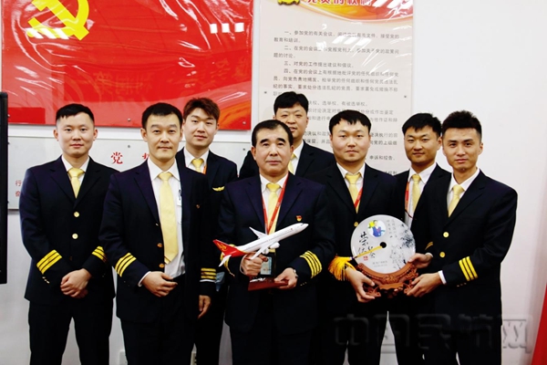公司党委书记向周广德机长献花