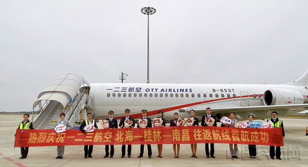 《中国民航报》、中国民航网 记者钱擘 通讯员蔡晓悠 报道:伴随3月26日航班航季,东航所属一二三航空,使用国产ARJ21-700客机,开航“北海—桂林—南昌”。