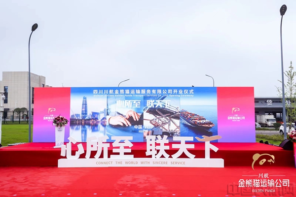 《中国民航报》、中国民航网 记者郝蒙 通讯员向征、许婧 报道:2023年6月16日,四川川航金熊猫运输服务有限公司(以下简称“金熊猫运输公司”)开业仪式在川航物流天府物流园区举行。川航集团和川航股份公司以及成都市东部新区、民航四川监管局、机场公安局、天府国际机场安全运行监督办公室等相关单位领导出席了开业仪式,共同完成启动仪式,并在成都天府国际机场参观了特种车辆。
