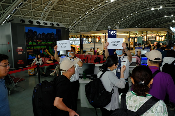 加强中转引导,确保团队在成都双流机场紧密衔接(樊明亮/摄)