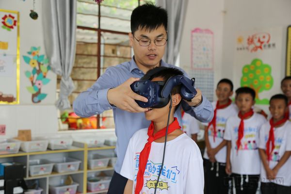 双江当地小学生体验东航信息部员工设计的VR课程(东航信息部供图)