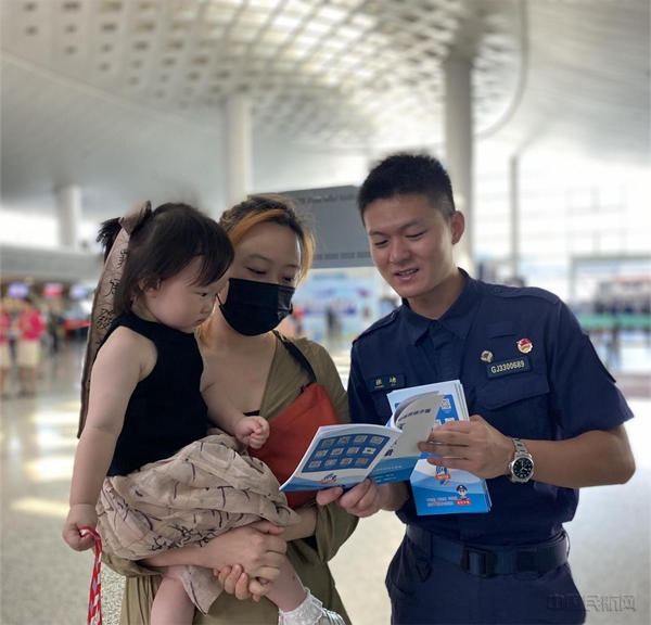 中国民航网 通讯员王净 报道:7月12日,长龙航空联合浙江省公安厅机场公安局、杭州萧山国际机场有限公司,在萧山机场T3航站楼开展了以“预警劝阻别忽视,财产安全要重视”为主题的反诈宣传活动。