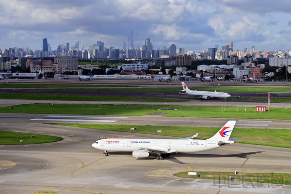 暑运期间在上海虹桥机场运行的东航航班(税宁/摄)