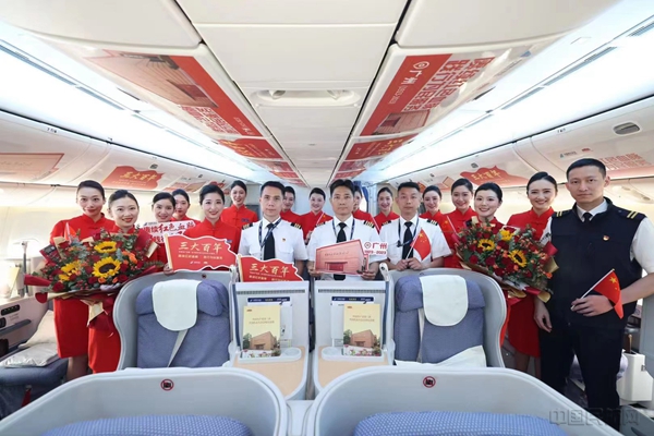 《中国民航报》、中国民航网 记者郭瑛 报道:“欢迎乘坐中共三大主题航班!”8月9日,中国南方航空CZ3177航班从广州起飞前往北京,这是南航与中共三大会址纪念馆联合打造的主题航班,旨在纪念中国共产党第三次全国代表大会在广州召开一百周年。通过空中小课堂、党史和民航科普知识问答等形式,向旅客介绍中共三大历史,使广大旅客在红色之旅中,深刻感悟伟大建党精神,汲取前行力量。