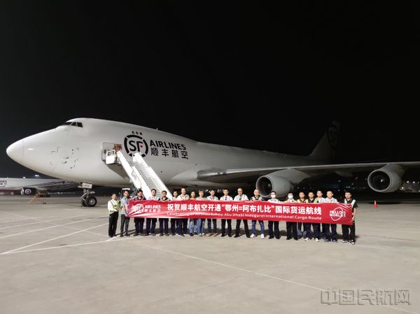 中国民航网讯:2023年8月16日晨2时许,顺丰航空一架波音747-400型全货机装载着90余吨货物从鄂州花湖机场起飞,前往阿联酋首都阿布扎比,标志着“鄂州—阿布扎比”国际货运航线正式开通运行,这是顺丰航空在鄂州开通的首条飞往中东地区的货运航线。
