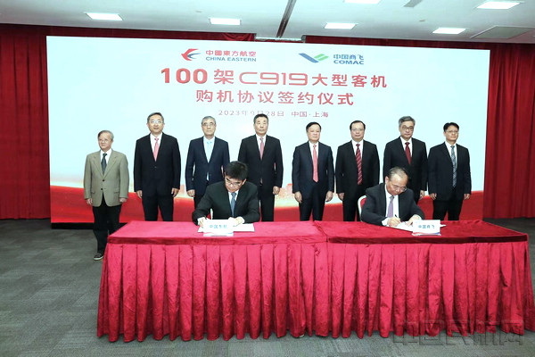 《中国民航报》、中国民航网 记者钱擘 报道:2023年9月28日,作为C919大型客机的全球首发用户,中国东航再次与中国商飞在沪签署购机协议。东航在2021年签订首批5架的基础上,再增订100架C919大型客机。这标志着C919大型客机收获迄今为止最大单笔订单,中国东航同时成为当前C919大型客机的全球最大用户,国产大飞机C919大规模、大机队的商业采购、交付和运营全面开启,向着“飞出安全、飞出志气、飞出品牌、飞出效益”的目标稳步迈进。