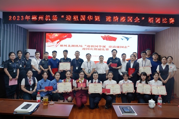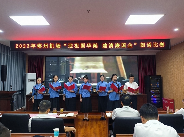 中国民航网 通讯员张倩 报道:为全面贯彻落实党的二十大精神,进一步促进清廉国企建设,在庆祝新中国74周年华诞之际,郴州北湖机场工会举办“迎祖国华诞 建清廉国企”朗诵比赛,热烈献礼祖国母亲。