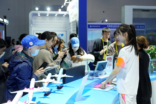 观展人员纷纷在长龙航空展位前驻足,拿出手机拍照“打卡”