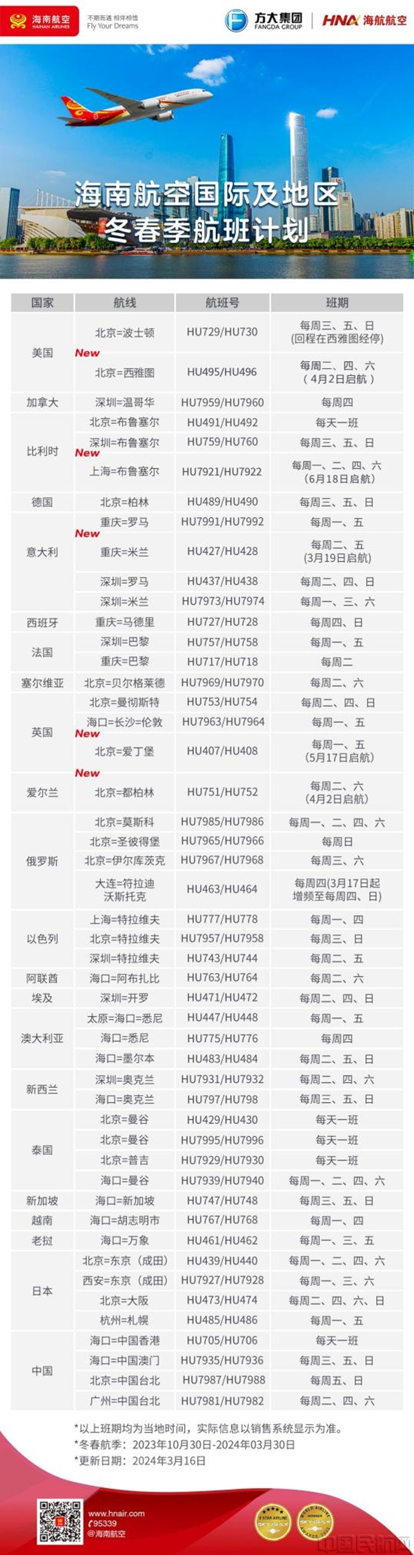 海南航空国际及地区航线班期计划(本文图片均由海航提供)