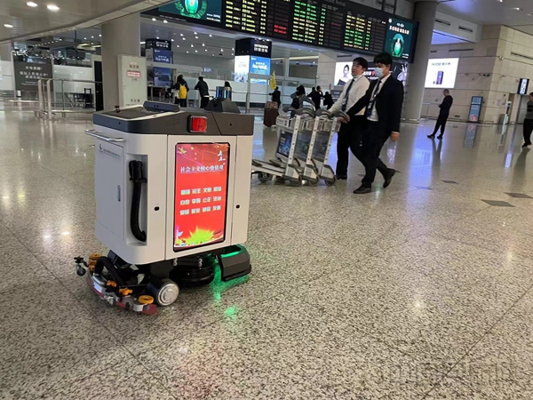 《中国民航报》、中国民航网 记者胡夕姮 报道:今年4月初,一台被称为“航站楼智能洁净卫士”的服务型机器人在南京禄口国际机场T2航站楼国际到达区一楼开启试运行。除清洁功能外,其还具备广告投放、安防监控、语音问询等多重功能,充分满足了机场对高效清洁和智能化管理的双向需求。