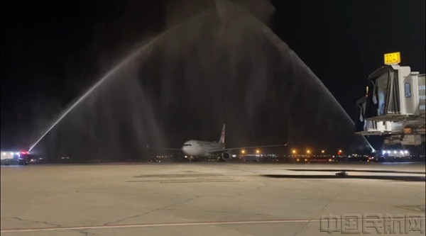 利雅得机场迎接东航首航航班的水门仪式