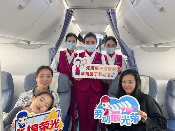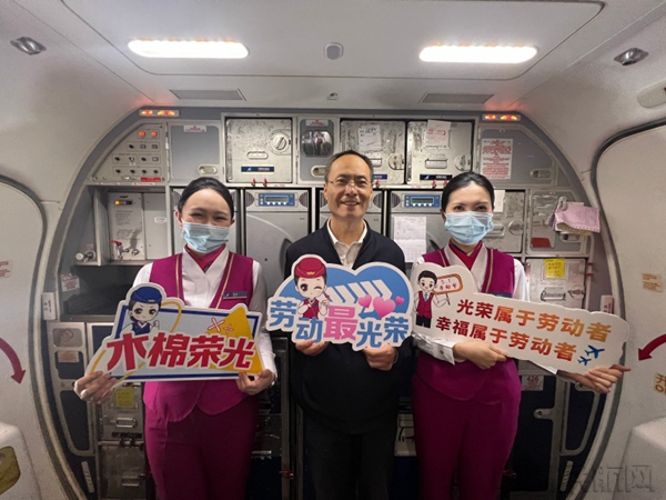 在这个特殊的日子里,南航新疆分公司客舱部在CZ6646乌鲁木齐—郑州航班上开展“五一”劳动节主题航班,乘务组在客舱内开展了“岗位小能手”分享活动,邀请航班中的旅客一起分享了各自岗位上的故事。大家都是来自各行各业的劳动者,在这样一个美好的假日里相聚在万米高空,在感受乘务组提供亲和精细服务的同时共同度过了一个难忘的劳动节,同时旅客朋友们也对乘务组的工作给予了最暖心的评价,“乘务员辛苦了,坚守在岗位上的你们,劳动最光荣,为你们点赞!”