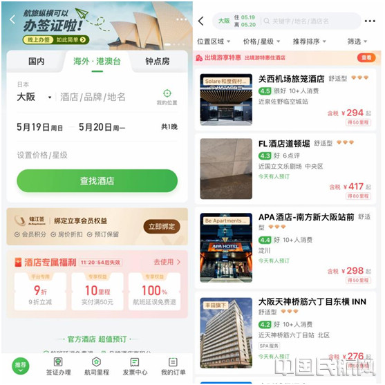 为提升旅客的出境游玩体验,航旅纵横推出海外及中国港澳台地区酒店预订功能,覆盖全球200多个国家和地区的酒店资源,涵盖经济型到五星级多标准类型,以满足不同旅客的需求。通过航旅纵横预订境外酒店,旅客可享受专属客服、赠送航空公司里程等多项权益,让出行更加轻松便捷。(编辑:张薇,校对:张彤,审核:韩磊)