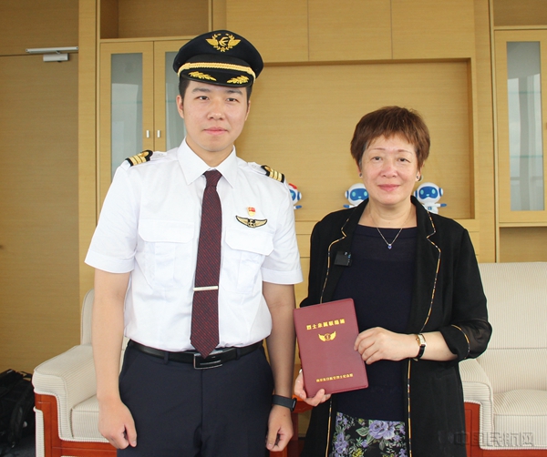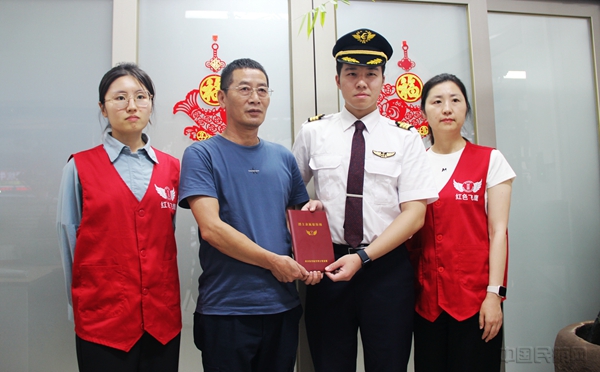 向张静女士递交英烈亲属联络簿(本文图片均由东航供图)
