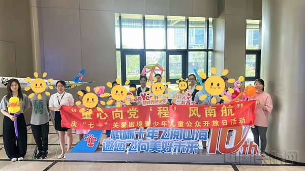 《中国民航报》、中国民航网 记者胡夕姮 通讯员奚雯琪、董思琪 报道:“小动物也能坐飞机吗?”“为什么我坐飞机的时候会耳朵疼?”7月5日,在南航上海分公司团委、程家桥街道团工委、程家桥街道未保站共同主办的“童心向党程风南航”庆“七一”公众开放日活动中,来自程家桥街道困难家庭的10名青少年儿童走进上海南航大厦,在心中种下了一颗颗翱翔蓝天的种子。