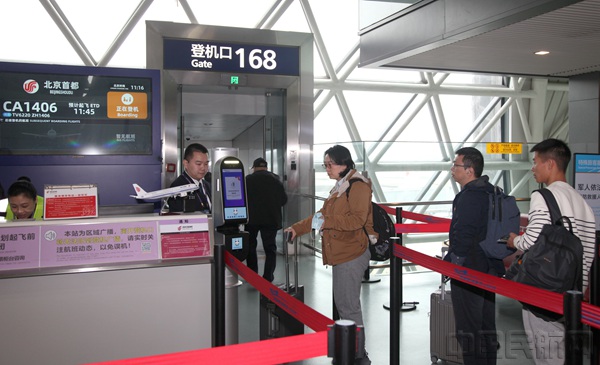 国航西南分公司地服部员工为CA1406旅客办理登机手续(李蛟/摄)