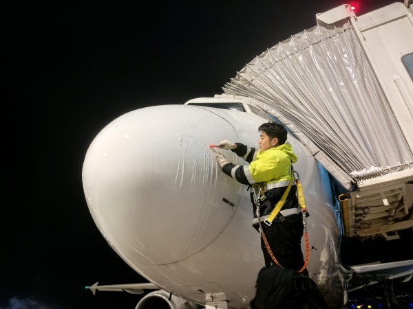 中国民航网 通讯员高炜、陈艺文 报道:1月24日,一场罕见的强寒潮席卷而来,这轮寒潮是自2008年雪灾之后最猛烈的一次大范围降雪,兰州中川机场晚间关闭。面对恶劣天气,东航甘肃人没有畏惧。1月25日凌晨4点,工作人员已抵达机坪,除冰车的轰鸣声在风雪中持续响起,工作人员手持专业工具,对飞机机翼、机身、尾翼等关键部位进行除冰作业,确保飞机表面无冰霜残留,保障飞行安全。经过不懈努力,一架架飞机恢复安全起降条件。25日上午,机场逐步恢复运行。东航航班顺利起飞。(编辑:张彤 校对:王亚玲 审核:韩磊)