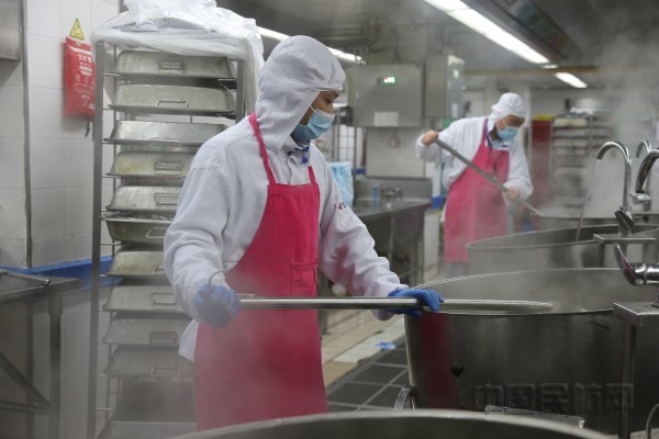 制作经济舱的空中餐食,容量大、效率高的大汽锅能更好满足烹饪所需。“我们的工作不仅是技术活,还是体力活。”崔广义说,工作对臂力体力要求都很高,他和同事们在厨房一站就是一整天。在虹桥中心餐食制作部的厨房里,像崔广义这样的热餐烹饪师有47人,因为倒班制,春运里每天有半数以上在岗,工作强度也高于平常一大截。