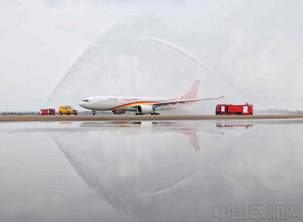 当天上午,海南航空在海口美兰国际机场举行了隆重的接机仪式。空客A330新飞机抵达后,穿越了象征民航最高礼遇的“水门礼”,正式入列海南航空机队。空中客车全球执行副总裁兼中国公司首席执行官徐岗,辽宁方大集团董事、执行总裁兼党委副书记刘一男,辽宁方大集团高级副总裁兼海航航空集团董事长丁拥政,海航航空集团副总裁兼海南航空董事长祝涛,海航航空集团副总裁兼海南航空党委书记桂海鸿,海南航空总裁余超杰,海南航空副总裁郭烁及媒体记者代表等出席了此次接机仪式,共同见证这一重要时刻。