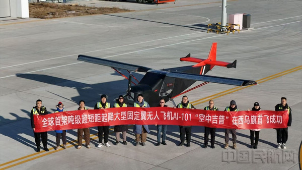 《中国民航报》、中国民航网 记者梁永军、冯智君 通讯员马里奇 报道:近日,麦克兰(上海)智能科技公司历时五年自主研发的AI-101“空中吉普”大型固定翼无人飞机,在内蒙古西乌珠穆沁旗通用机场成功首飞。该飞机是全球首款实现超短距起降的吨级大型固定翼无人机,标志着我国在高端无人机研发领域取得重大突破。