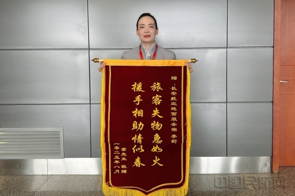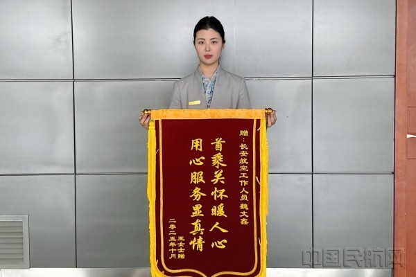 事后,王女士专程送来一面锦旗,上面写着“首乘关怀暖人心 用心服务显真情”,以此向地服人员魏文鑫的周到服务表示感谢和称赞,这面锦旗,不仅是一份肯定,更承载着一段温暖旅程的开始。魏文鑫说:“这只是日常服务中的一段寻常‘插曲’,面对旅客的紧张不安,我们用温暖的笑容以及多几句的关心和引导,努力成为让首乘旅客安心舒心出行的一束光。”