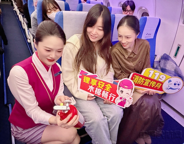 《中国民航报》、中国民航网 记者胡夕姮 通讯员韩筱、 潘水花 报道:11月10日,南航上海分公司在浦东飞往昆明的CZ3677航班上,成功举办了一场以“锂享安全 木棉畅行”为主题的云端消防课堂。此次活动聚焦民航出行中的消防安全,特别是锂电池设备的安全使用规范,通过创新互动实操体验,提升广大旅客的安全出行意识与应急处突能力。