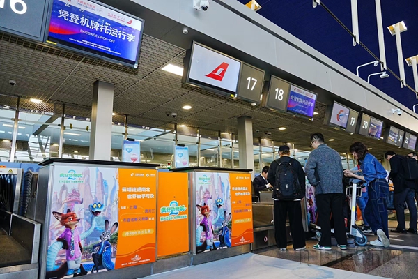 东航在浦东T1的值机柜台装饰了疯狂动物城元素