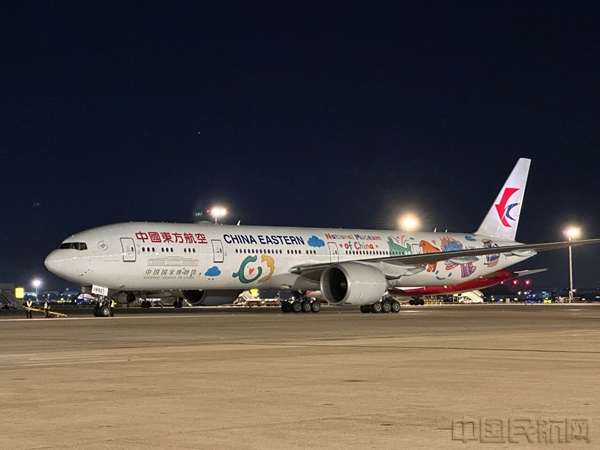 此次首航航班,东航特别选用“国博号”主题彩绘机执飞。这架彩绘机基于波音777-300ER大型宽体客机打造,由中国东航与中国国家博物馆联袂设计,于今年9月正式亮相,被誉为国博的“第49个展厅”,承载着满满的中华文化元素。