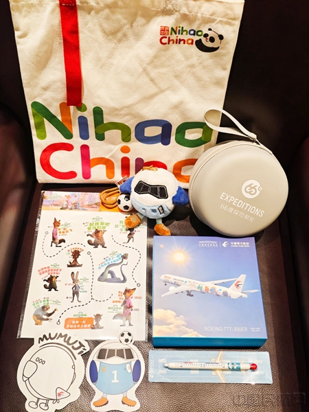 首航航班上,东航为旅客准备了丰富的礼品(本文图片均由东航提供)