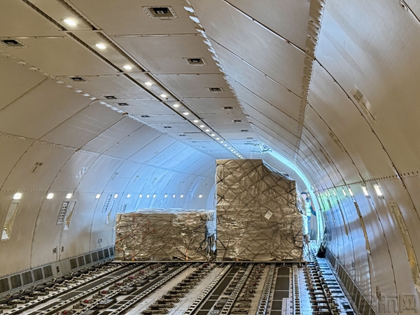 为保障首航航班货物安全高效运达目的地,南航物流全流程精细管控,一方面组建专项保障团队,将订舱、收运、组板、装卸等关键节点信息实时数字化,实现货物动态全程可追溯、可管控;另一方面针对锂电池等特殊货物,开通专属绿色安检通道,大幅压缩入仓时效,助力企业抢抓市场机遇。